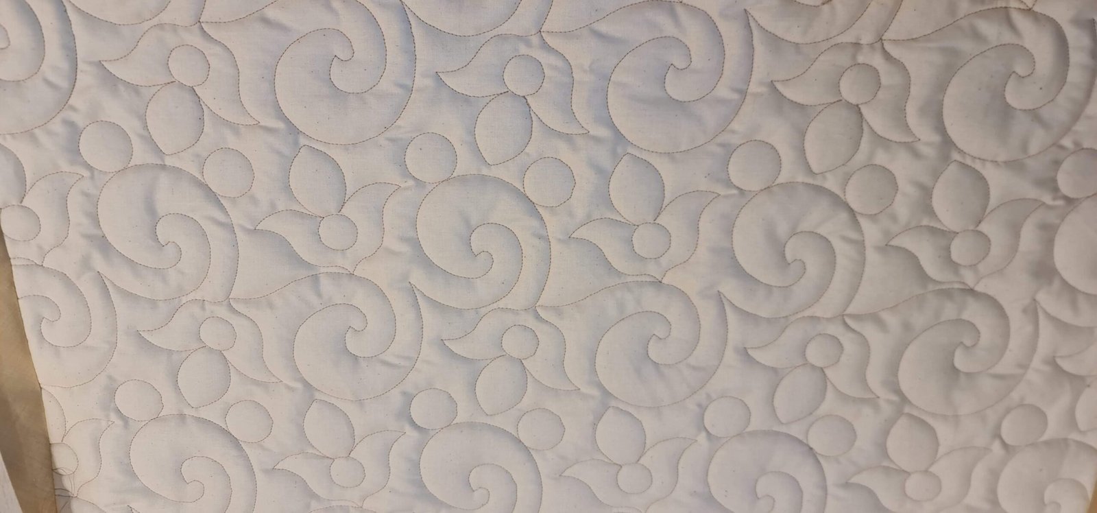 Gala es un acolchado exquisito que no solo aporta belleza, sino que también rellena perfectamente el espacio del quilt, creando una pieza armoniosa y visualmente atractiva. Este diseño es perfecto para quienes buscan un acabado elegante y sofisticado en sus proyectos de quilting.