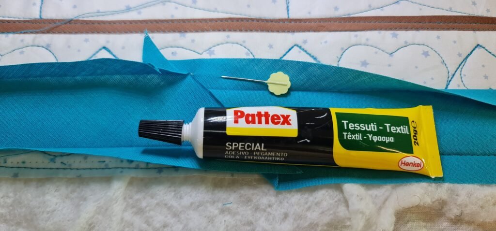 utiliza un poco de pegamento textil para unir las dos partes del bies