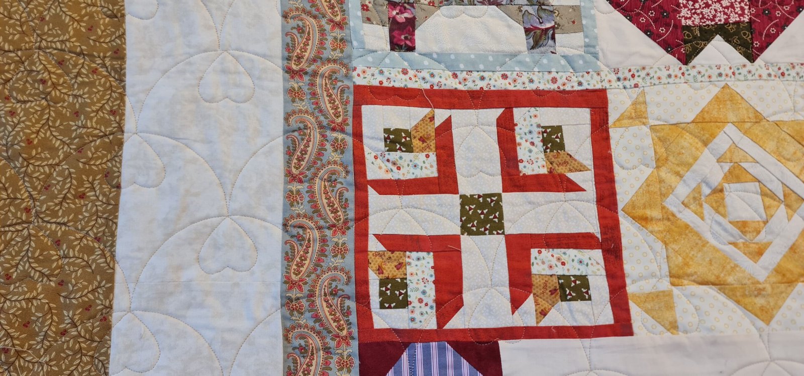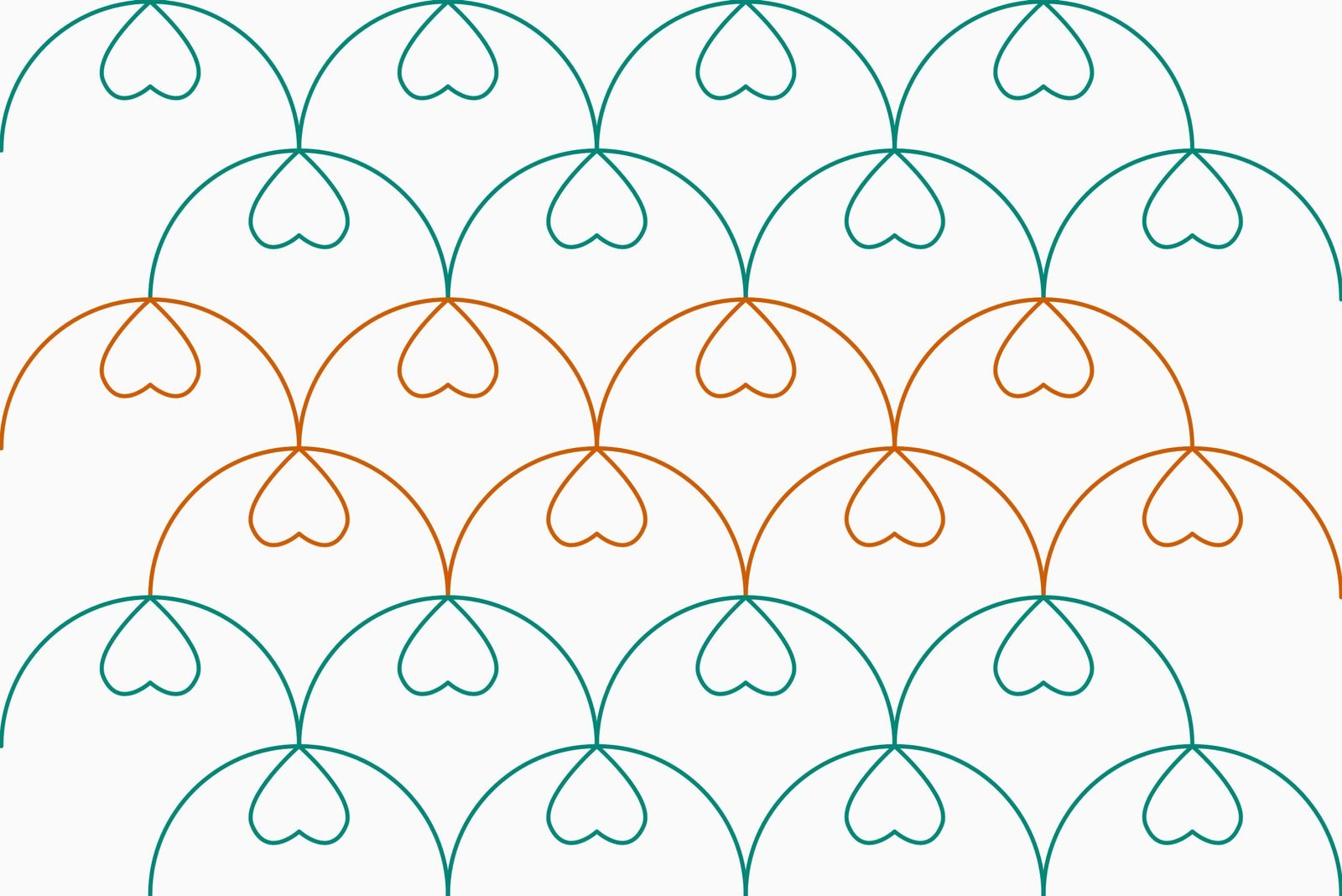El diseño Clam Shell with Hearts combina la elegancia del patrón clásico clamshell con la suavidad de las formas de corazón. Inspirado en la técnica japonesa Sashiko, este patrón digital de acolchado longarm aporta ritmo y equilibrio a tus quilts, tanto en E2E (edge-to-edge) como en bordes o caminos.